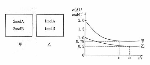 13.向甲乙两个容积均为lL的恒容容器中,分别充人2mol A、2m0I B和l mol A、l mol B。相同条件下,发生下列反应:A(g)+B(g)
