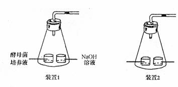 (2)实验材料和用具:酵母菌培养液、500mL锥形瓶两个、烧杯4个、两根弯曲的其中 带有红色液珠的刻度管、NaOH溶液、清水、凡士林。
