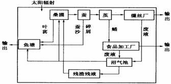7.(南京市2009届高三质量检测20)生态农业是指运用生态学原理,在环境与经济协调发展的思想指导下,应用现代科学技术建立起来的多层次、多功能的综合农业生态体系。下图为桑基鱼塘生态系统,它是我国南方各省农村比较常见且行之有效的生态系统。下列有关说法错误的是 ( )