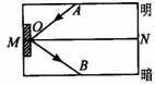 5.如图,相邻两室,一明一暗,两室之间的墙上有一平面镜M,且∠AON=∠BON,甲、乙两个人分别站在A、B两点,而向平面镜张望,则 ( )