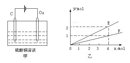 A.锌作阳极,铁制品作阴极,溶液中含Fe2+ B.锌作阴极,铁制品作阳极,溶液中含Zn2+ C.锌作阴极,铁制品作阳极,溶液中含Fe3+ D.锌作阳极,铁制品作阴极,溶液中含Zn2+ 20.在相同温度下,已知2H2(g)+O2(g)=2H2O(g) △H1 ;2H2(g)+O2(g)=2H2O(l) △H2;H2(g)+1/2O2(g)=H2O(l) △H3,则△H1,△H2,△H3大小关系为: A.△H1=△H2=△H3 B.2△H3=△H2>△H1 C.△H3>△H2>△H1 D.2|△H3|=|△H2|>|△H1| 21.通以相等的电量,分别电解等浓度的硝酸银和硝酸亚汞(亚汞的化合价为+1)溶液,若被还原的硝酸银和硝酸亚汞的物质的量之比n(硝酸银)︰n(硝酸亚汞)=2︰1,则下列表述正确的是: A.在两个阴极上得到的银和汞的物质的量之比n(银)︰n(汞)=2︰1 B.在两个阳极上得到的产物的物质的量不相等 C.硝酸亚汞的化学式为HgNO3 D.硝酸亚汞的化学式为Hg2(NO3)2 22.按如下图甲装置进行实验,若乙中坐标图x轴表示流入电极的电子的物质的量,则下列叙述不正确的是: A.E表示生成铜的物质的量 B.E表示反应消耗水的物质的量 C.F表示反应生成氧气的物质的量 D.F表示生成硫酸的物质的量 23.在水中加入等物质的量的Ag+、、Pb2+、Na+、、SO42-、、NO3-、、Cl-,该溶液放在用惰性电极材料作电极的电解槽中,通电片刻,则氧化产物与还原产物质量之比为: A. 35.5 :108 B. 16 :207 C. 8 :1 D. 108 :35.5 24.化合物HIn在水溶液中因存在以下电离平衡,故可作酸碱指示剂 (红色) (黄色) 现把下列物质溶于水配制成0.02mol/L的水溶液,其中能使指示剂显黄色的是: ①HCl ②SO2 ③NaHSO4 ④氨气 ⑤Na2O2 ⑥NaOH A.①②③ B.①③ C.④⑤⑥ D.④⑥ 25.在一定体积的密闭容器中放入3L气体R和5L气体Q,在一定条件下发生反应: 2R(气)+5Q(气)= 4X(气)+nY(气) 反应完全后,容器温度不变,混合气体的 压强是原来的87.5%,则化学方程式中的n值是 A.2 B.3 C.4 D.5 第II卷(非选择题,共50分) 二、填空题:(每空2分,共28分) 26.(4分)同素异形体相互转化的反应热相当少而且转化速率较慢,有时还很不完全,测定反应热很困难,现在可根据盖斯定律进行计算。 已知:P4(s,白磷)+5O2(气体)= P4O10(固体) △H=-2983.2kJ·mol-1 ① P(s,红磷)+O2(气体)=P4O10(固体) △H=-738.5kJ·mol-1 ② (1)由热化学方程式来看,更稳定的磷的同素异形体是_______________________________。 (2)试写出白磷转化为红磷的热化学方程式___________________________________。 27.(10分)铝和氢氧化钾都是重要的工业产品。请回答: (1)工业冶炼铝的化学方程式是___________________________________。 (2)铝与氢氧化钾溶液反应的离子方程式是_______________________________。 (3)工业品氢氧化钾的溶液中含有某些含氧酸杂质,可用离子交换膜法电解提纯。电解槽内装有阳离子交换膜(只允许阳离子通过),其工作原理如图所示。 ②已知水是极弱的电解质,存在电离平衡: H2O pH会增大,请简述原因 。 ③除去杂质后的氢氧化钾溶液从溶液出口 (填“A”或“B”)导出。 28.(14分)在500℃、2×107Pa和催化剂条件下, 把物质A,B按物质的量之比2∶1充入固定容积 为2L的密闭容器中,发生如下反应: 2A(g)+ B(g) (1)写出该反应的化学平衡常数表达式K=_________________________ 。 (2)降低温度,该反应K值______,化学反应速度_____(以上均填“增大,减小或不变”)。 (3)在此条件下向此容器中充入2molA和过量的B,充分反应后,放出的热量______180kJ(填“<”“>”“=”),理由_________________________________________________________。 (4)关于该反应的下列说法中,正确的是__________。 A.△H>0,△S>0 B.△H>0,△S<0 C.△H<0,△S>0 D.△H<0,△S<0 (5)在上述反应条件的密闭容器中,欲提高A和B的转化率,下列措施可靠的是___(填字母)。 A.向容器中按原比例再充入原料气 B.向容器中再充入惰性气体 C.改变反应的催化剂 D.分离出物质C 三、实验题 (每空2分,共16分) 29.(10分)某化学研究小组为探究某化学问题, 等5支试管中分别放入干燥的细铁丝、浸过食盐水 的细铁丝、浸过清水的细铁丝、装配成右图所示 的5套装置,每隔一段时间测量导管中水面上升 的高度,结果如下表所示。(表中所列数据为导管水面上升的高度,单位:cm)