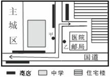 36、图中箭头表示城区居民的主要流动方向,若在纵向道路上设置一个经营蔬菜的摊点,乙地比甲地更具优势,其原因是