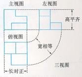 宽相等:俯视图与左视图的宽度应相等