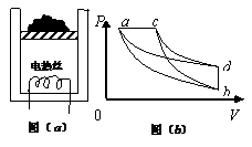 (上海市卢湾区)图(a)所示绝热气缸(气体与外界无热交换)内封闭一定质量的理想气体,电热丝通电前后,改变气体参量分别得到两条等温线.待气体状态稳定后陆续取走活塞上方部分物体,又得到一气体变化图线.则在图(b)中能正确反映上述三个变化过程的图线是
