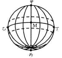 8、下图中,甲、乙、丙、丁位于晨昏圈上、且相隔90°,地球位于远日点附近。读图,完成下题。