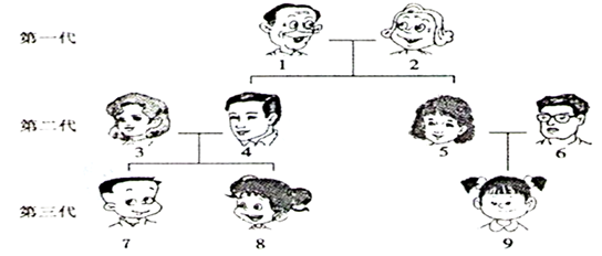 下图是某家庭成员的关系图谱,该家庭成员用阿拉伯数字表示,请分析下图回答问题。(10分)![]()