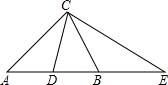 | 如图,CB、CD分别是钝角△AEC和锐角△ABC的中线,且AC=AB,给出下列结论:①AE=2AC; ②CE=2CD;③∠ACD=∠BCE;④CB平分∠DCE。请写出正确结论的序号( )。 |