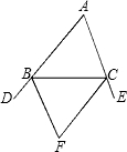 | 如图,△ABC的外角∠CBD、∠BCE的平分线相交于点F,若∠A=68°,∠F=( ) |