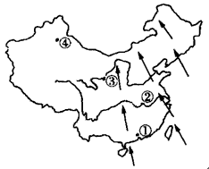 | 1、图中数码③代表哪座山脉? A、小兴安岭 B、大兴安岭 C、太行山 D、长白山 |