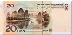 | 1、20元和50元人民币所显示的景观分别是 |
