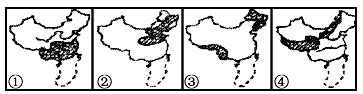 | 下图中每一幅小图表示我国一种土地资源的分布情况,下列选项中图文内容相符的是 |