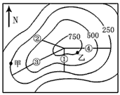 | 读等高线地形图,据图完成1~2小题。 |