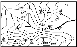 | 2、为了加强农田基本建设,实现旱涝保收,村民拟在图示区建一蓄水量最大的水库,合适的坝址是 |