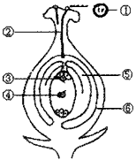 | 下边是绿色开花植物受精过程示意图。有关该过程的叙述正确的是 |