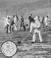 | 科学家们利用一些细菌来清除石油泄漏的洋面和有汽油泄漏的土壤,以便于净化环境(如图所示)。这些能净化环境的细菌属于: |