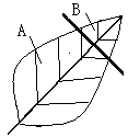 | 一绿色植株在黑暗中放置24小时,选择一片绿叶,把主叶脉剪断(如图所示),然后将植株放在阳光下照射2~4小时,发现B区不能正常制造淀粉,其中原因是B区叶片缺少 |