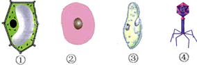 A.图示①、②分别是植物细胞、动物细胞结构示意图 B.①与②的主要区别是它有细胞壁、液泡和叶绿体等 C.图③也是一个细胞,它有细胞壁却没有成形的细胞核 D.图④示生物营寄生生活,没有细胞结构也没有自己的遗传物质 |