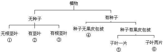 | (1)请你协助兴趣小组同学,按下列分类表解逐一分类,下表中③、④、⑥对应的植物名称正确的是 |