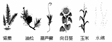 A.③水绵;④油松;⑥向日葵 B.③肾蕨;④油松;⑥向日葵 C.③肾蕨;④葫芦藓;⑥向日葵 D.③肾蕨;④油松;⑥玉米 |