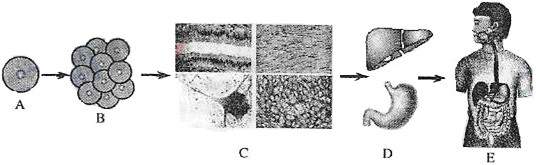 | A~E示意人体的不同结构层次,下列有关叙述正确的是 |