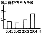 | 赤潮是世界性的水污染公害。下图表示2001年~2004年浙江赤潮累计污染海域面积的柱形图。 |