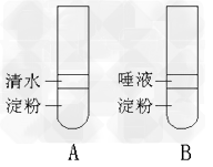 | 在这2支试管中各加入淀粉糊2mL,再向A试管中加2mL清水,向B试管中加2mL唾液,再向2支试管中滴入1滴碘液:本实验的目的是观察唾液淀粉酶分解淀粉。在本实验中_______是实验组,_______是对照组。两组加的清水或唾液都是2mL,这是因为要遵循等量原则。A组的现象是__________,B组的现象是_________。本实验还应注意的问题:将两试管混合物充分振荡后放入37℃的温水中,这是因为在37℃时酶活性最大。 |