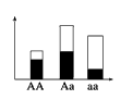 | 在一个种群中,开始时A基因频率为50%,a基因频率为50%。三种基因型的比例分别是:AA为25%、Aa为50%、aa为25%,但基因型为aa的个体其生存能力和竞争能力明显低于另两种基因型的个体。那么经过了若干代的自然选择后,你认为下列哪种变化是符合实际情况的 |