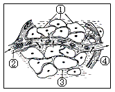 | A.图中②③④依次表示血浆、组织液、淋巴 B.①②③④构成了内环境 C.②与③的主要差别是②中含有较多的蛋白质 D.②中的糖主要是来自对食物的消化、吸收 |