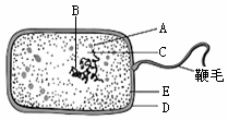 | (1)写出各部分的名称:A_____,B_____,C_____,D_____,E_____。 A.核糖体 拟核 细胞质 细胞壁 细胞膜 B.核糖体 细胞核 细胞质 细胞壁 细胞膜 C.核糖体 细胞核 细胞质 细胞膜 细胞壁 D.核糖体 拟核 细胞质 细胞膜 细胞壁 (2)图中细胞属于____生物,其同化作用类型一般为______型。 A.真核 异养 B.原核 异养 C.真核 自养 D.原核 自养 (3)在显微镜下看到的细胞结构如图所示,实际的鞭毛位置应该在______。 A.左侧 B.右侧 C.上侧 D.下侧 |
