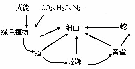 | (1)图中所示的内容在生命系统的结构层次中属于 ______。 A.生态系统 B.群落 C.种群 D.个体 (2)所有的螳螂在生命系统的结构层次中属于________。 A.群落 B.个体 C.种群 D.生态系统 (3)所有的生物组成______。 A.群落 B.个体 C.种群 D.生态系统 (4)图中属于原核生物的是_______,构成细菌与蛇的细胞比较,主要区别是蛇的细胞具有______。 A.细菌 核膜 B.螳螂 核膜 C.蝉 细胞膜 D.细菌 细胞膜 |