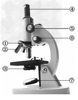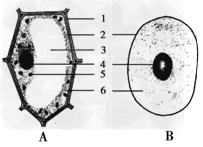 | 下图为细胞结构和显微镜结构,制作人口腔上皮细胞临时装片时,染色所用的液体是_______,用显微镜观察制作好的临时装片,在镜下已经找到观察物,如果要使物像更清晰些,应调节显微镜的_______,在显微镜下观察到的人口腔上皮细胞的结构图应该是上图中的____ |