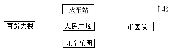 C.人民广场在市医院的西面