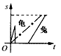 | 龟兔赛跑,它们从同一地点同时出发,不久兔子就把乌龟远远甩在后面,于是兔子便得意洋洋地躺在一棵大树下睡起觉来。乌龟一直在坚持不懈、持之以恒地向终点跑着,兔子一觉醒来,看见乌龟快接近终点了,这时才慌忙追赶上去,但最终输给了乌龟。下列图像中大致反映兔龟行走的路程s随时间t变化情况的是 |