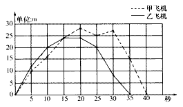 A.甲飞机飞行了40秒,乙飞机飞行了35秒。 B.从图上看,起飞后第10秒甲飞机的高度是16米,乙飞机飞行的高度是20米; C.起飞后第15秒两架飞机处于同一高度;起飞后大约35秒两架飞机的高度相差最大。 D.起飞后第15秒至第20秒乙飞机的飞行状态是飞行平稳 |