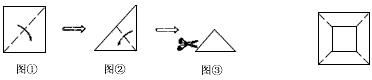 | 将一张正方形的纸沿对角对折后,可以得到一个等腰直角三角形,在将等腰直角三角形对折,使它的两个锐角重合,又得到一个小等腰直角三角形,在这个小等腰直角三角形上任意剪一个图案,展开后图形的对称轴至少有 |