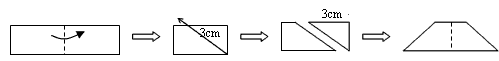 | 如图,把长为8cm的矩形沿虚线对折,按图中的虚线剪出一个直角梯形,打开得到一个等腰梯形,剪掉部分的一个三角形的面积为6cm2,则打开后梯形的周长是 |