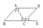 | (1)∠B+∠BCD=180°;(2)∠1=∠2;(3)∠3=∠4 ;(4)∠B=∠5 |