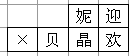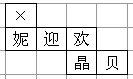 | 下面的四个图形都是有六个相同的正方形纸片组成,小正方体上分别贴有北京奥运会吉祥物,五个福娃(贝贝、晶晶、欢欢、迎迎、妮妮)的卡通画和奥运五环标志,如果分别用贝、晶、欢、迎、妮五个字来表示五个福娃,那么,折叠后能围成如图所示的正方体是 |