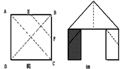 如图,正方形硬纸片ABCD的边长是4,点E、F分别是AB、BC的中点,若沿左图中的虚线剪开,拼成如下右图的一座“小别墅”,则图中阴影部分的面积是