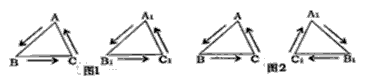 | 全等三角形又叫做合同三角形,平面内的合同三角形分为真正合同三角形与镜面合同三角形,假设 △ABC和△A1B1C1是全等(合同)三角形,点A与点A1对应,点B与点B1对应,点C与点C1对应,当沿周界A→B→C→A,及A1→B1→C1→A1环绕时,若运动方向相同,则称它们是真正合同三角形(如图1),若运动方向相反,则称它们是镜面合同三角形(如图2),两个真正合同三角形都可以在平面内通过平移或旋转使它们重合,两个镜面合同三角形要重合,则必须将其中一个翻转180° (如图),下列各组合同三角形中,是镜面合同三角形的是 |