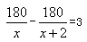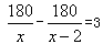 | “五一”旅游黄金周期间,几名同学包租一辆面包车前往某景区游玩,面包车的租价为180元,出发时,又增加了2名学生,结果每个同学比原来少分担3元车费,设参加游玩的同学为x人,则可得方程 |