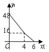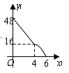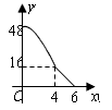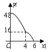 | 矩形ABCD中,AD=8cm,AB=6cm.动点E从点C开始沿边CB向点B以2cm/s的速度运动,动点F从点C沿边CD向点D以1cm/s的速度同时出发,运动至点D停止。如图可得到矩形CFHE,设运动时间为x(单位:s),此时矩形ABCD去掉矩形CFHE后剩余部分的面积为y(单位:cm2),则y与x之间的函数关系用图象表示大致是下图中的 |