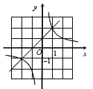 | 如图是一次函数y = kx + b 与反比例函数y = |