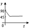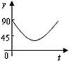 | 如图,点A、B、C、D为圆O的四等分点,动点P从圆心O出发,沿O-C-D-O的路线作匀速运动,设运动时间为t秒, ∠APB的度数为y度,则下列图象中表示y与t之间函数关系最恰当的是 |