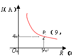 | 某种蓄电池的电压为定值,使用此电源时,电流 I(A)与可变电阻 R(Ω)之间的函数关系如图所示,当用电器的电流为10A时,用电器的可变电阻为( )Ω. |