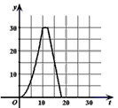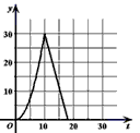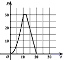 | 如图,在直角梯形ABCD中,AD∥BC,∠C=90。,CD=6cm, AD=2cm,动点P,Q同时从点B出发,点P沿BA、AD、DC运动到点C停止,点Q沿BC运动到C点停止,两点运动时的速度 都是1cm/s,而当点P到达点A时,点Q正好到达点C.设P点运动的时间为t(s),△BPQ的面积为y(cm2).则能正确表示整个运动中y关于t的函数关的系的大致图象是 |