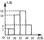 | 为了了解本校九年级学生的体能情况,随机抽查了其中30名学生,测试了1分钟仰卧起坐的次数,并绘制成如图所示的频数分布直方图,请根据图示计算,仰卧起坐次数在25~30次的频率是 |