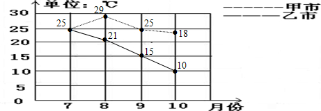 | 乙市平均气温 | 25 | 21 | 15 | 10 |