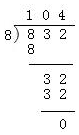 832÷8=104![]()