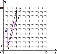 分析:先找出D点,然后连接AD、CD,△ABC以BC为底,高为2,△ADC以AD为底,高为2,即三角形ABC和三角形ADC的高相等,三角形ABC的底是4,三角形ADC的底是2,根据三角形的面积计算公式可以分别求出两个三角形的面积,然后比较即可.